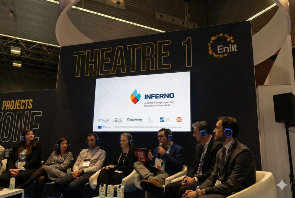 INFERNO was one of the projects in ENLIT Europe, from the 18th to 20th of November, in Bilbao, Spain. The project was part of the F6S Innovation Energy Efficiency synergy group showcasing their objectives, activities, and results. Together with i-STENTORE, WeForming, SNUG EU, TWAIN Project, DigiWind, Project EXIGENCE, 6G-PATH, HEDGE-IoT, HyLiST, HighMag-Project, STREAMS Project, 6G-LEADER, CLEANHYPRO, and Sea4Volt, at the EU Projects Zone of the event, ENLIT Europe 2025 was an amazing opportunity to engage with other funded projects and to know more about renewable and efficient energy initiatives.